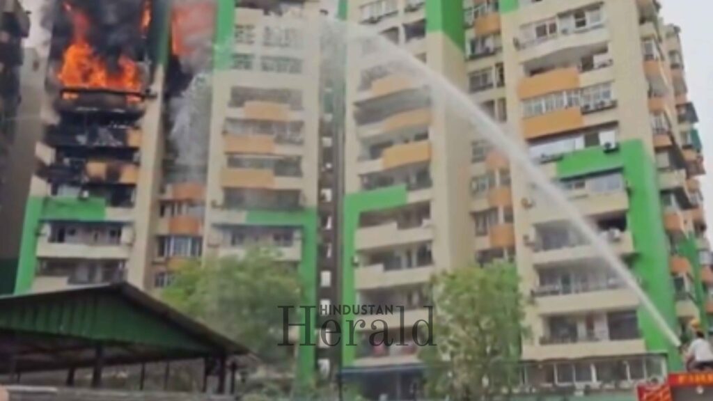 And this fire did not stay on the 9th floor. It spread. Flat to flat, floor to floor, the way fires do when nothing stops them early enough. By the time Ghaziabad’s Chief Fire Officer Rahul Pal got his teams on scene, eight flats had already been taken by the blaze. Roughly seven floors of the tower had been touched in some way.